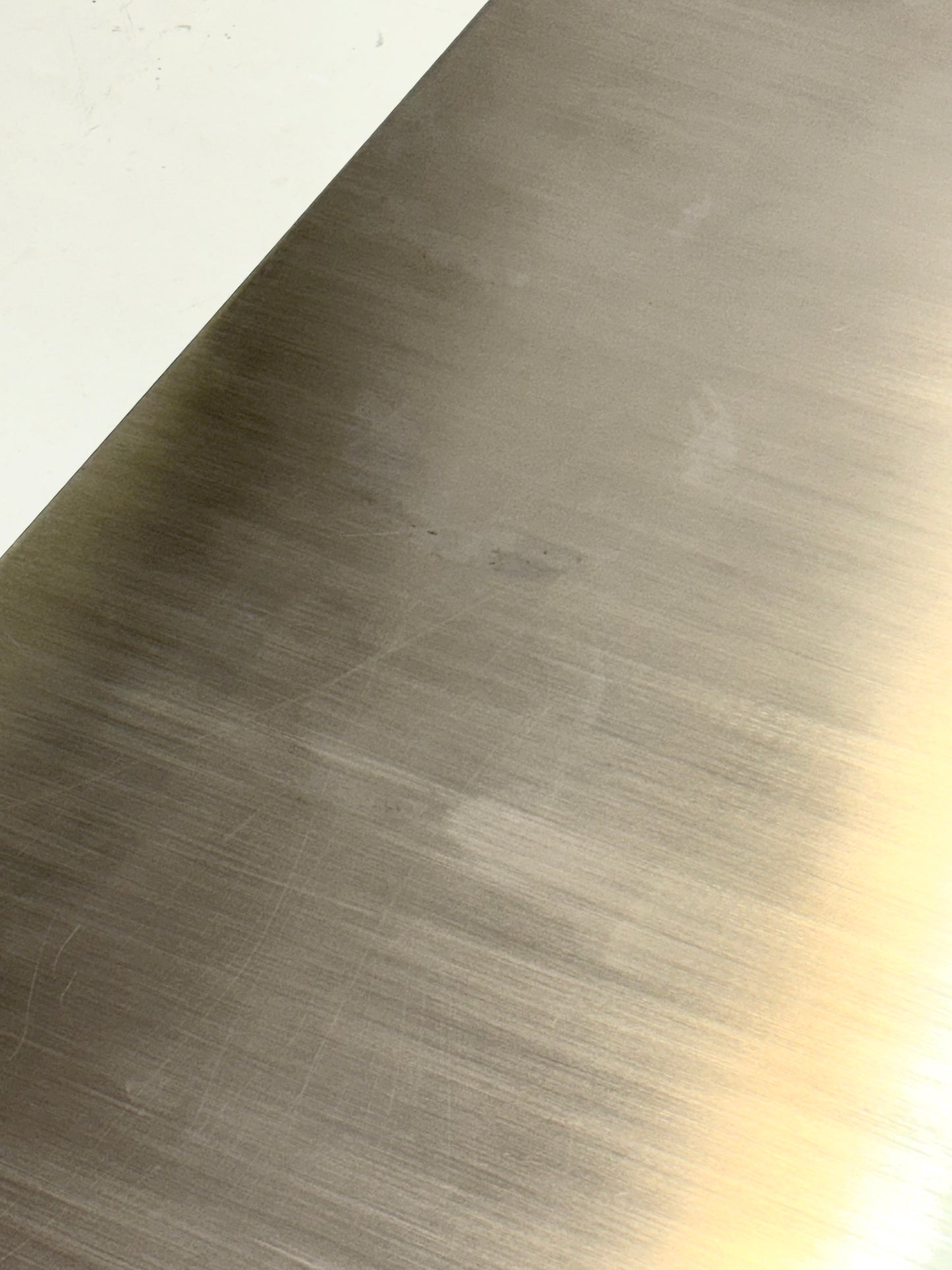 Het stevige structuur van het RVS maken de tafel niet alleen functioneel, maar ook een opvallend designobject.