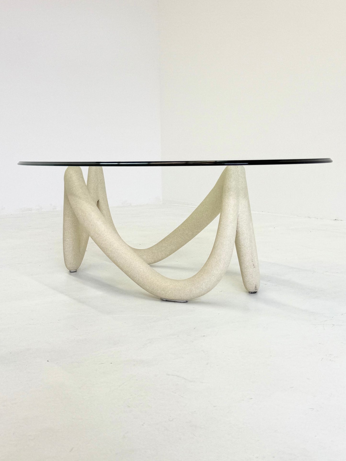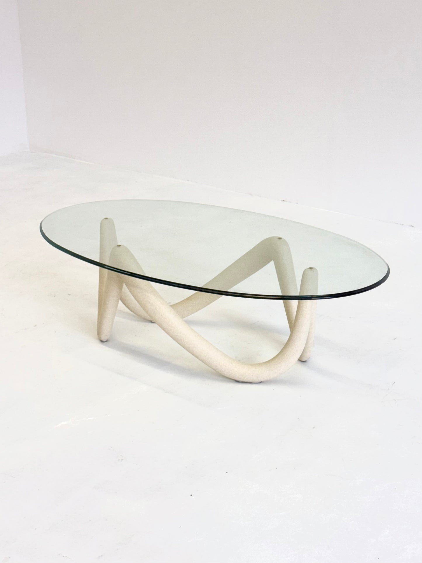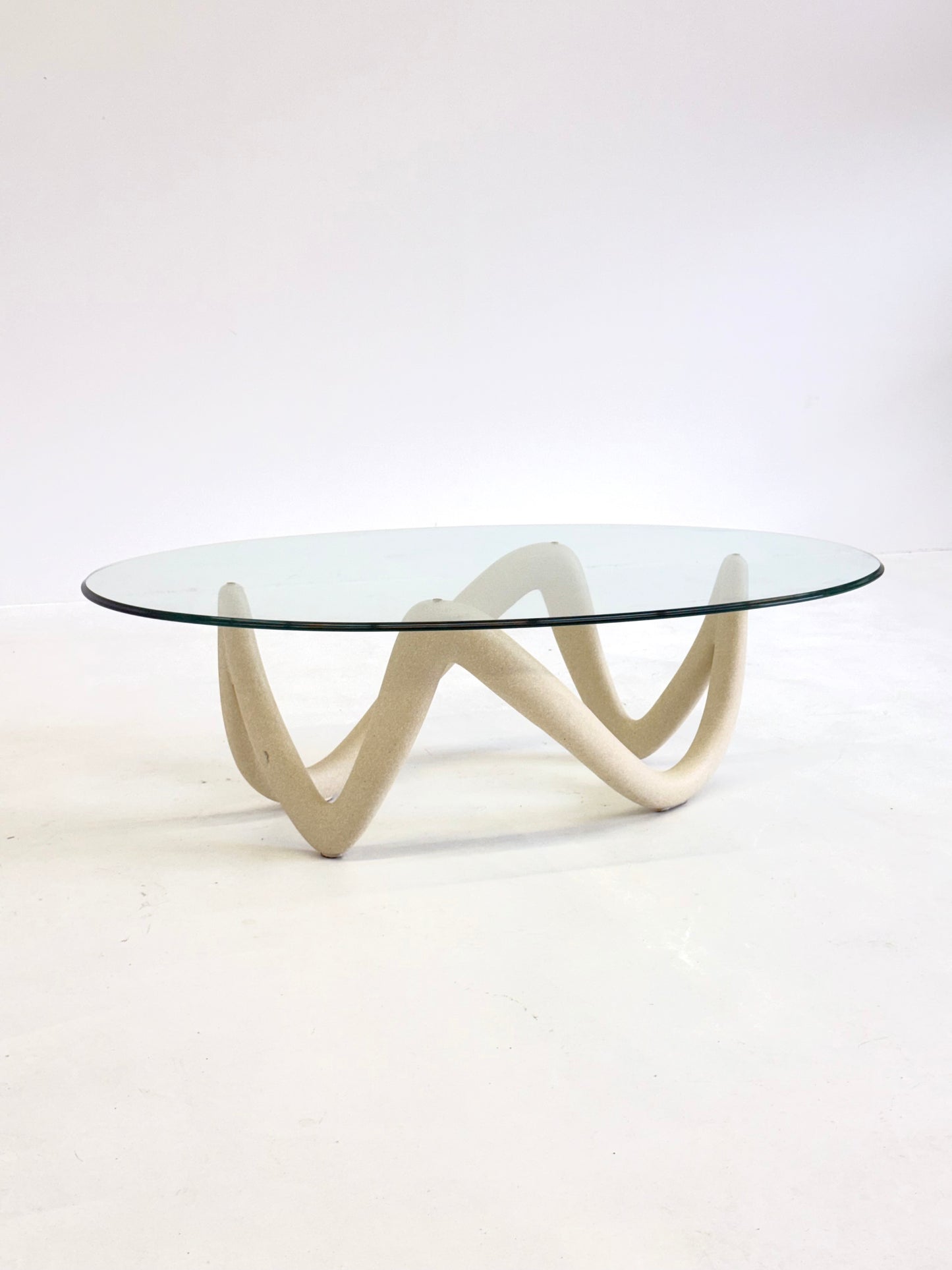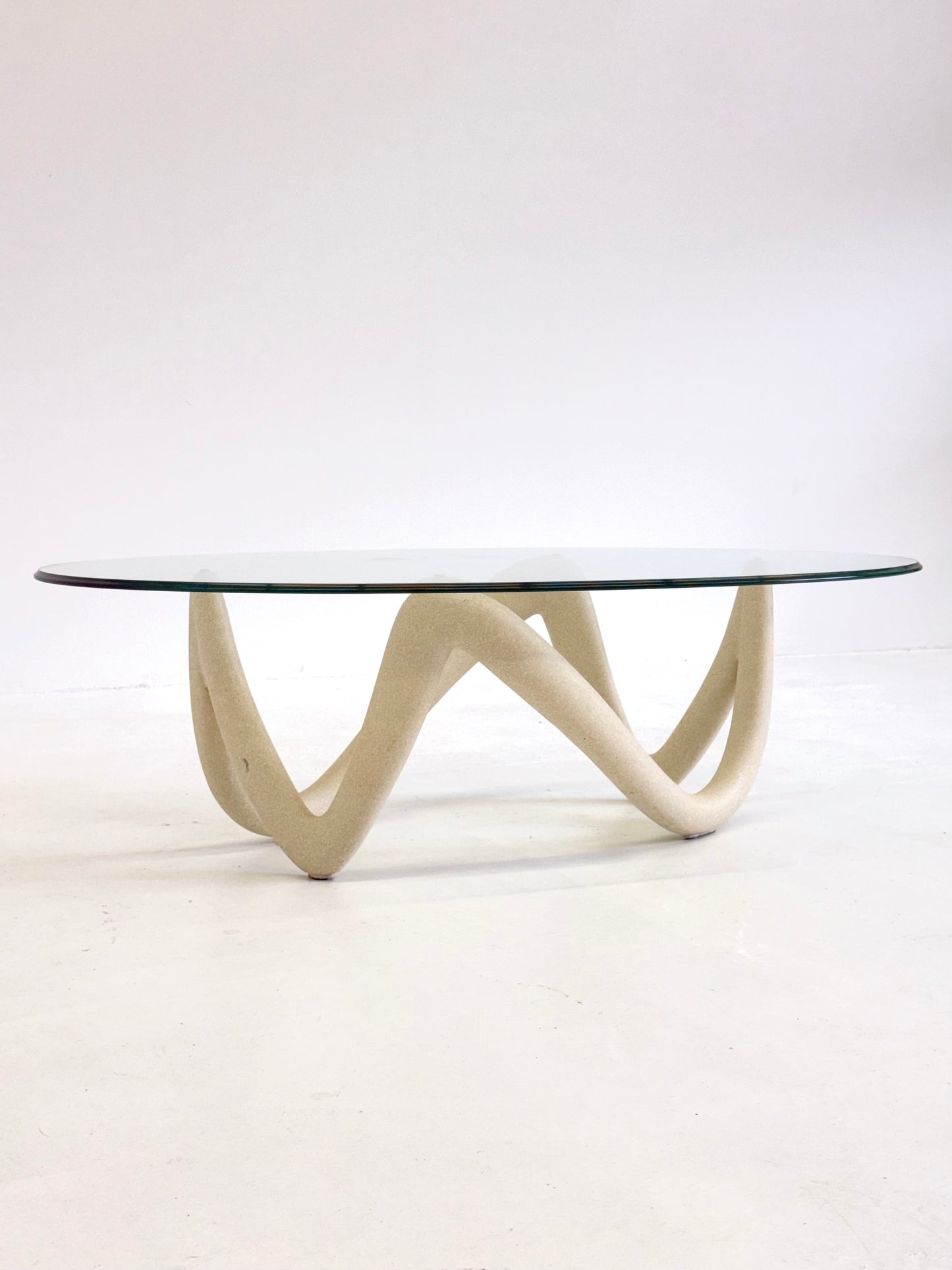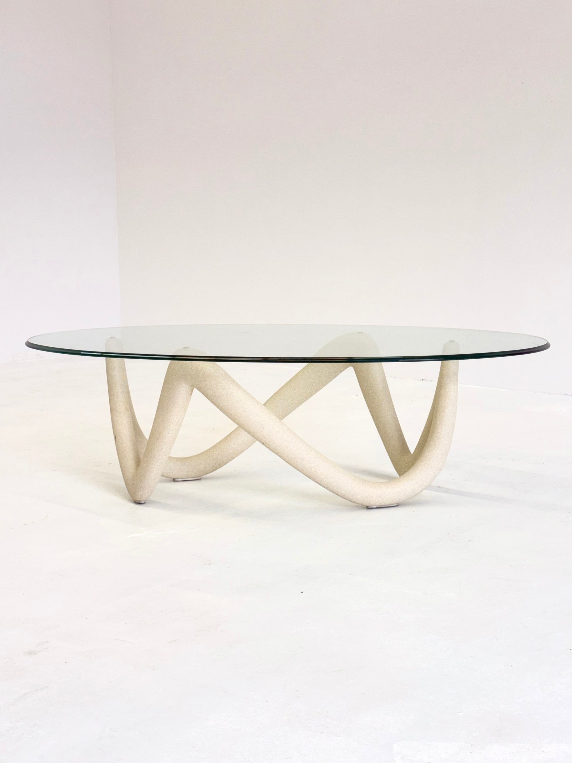 Ovale salontafel met sculpturaal onderstel van Armando Rosato