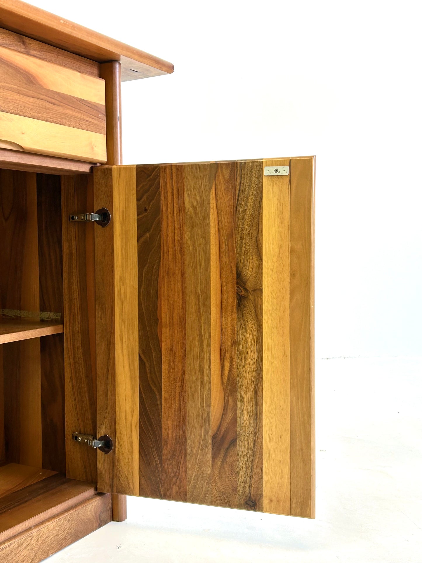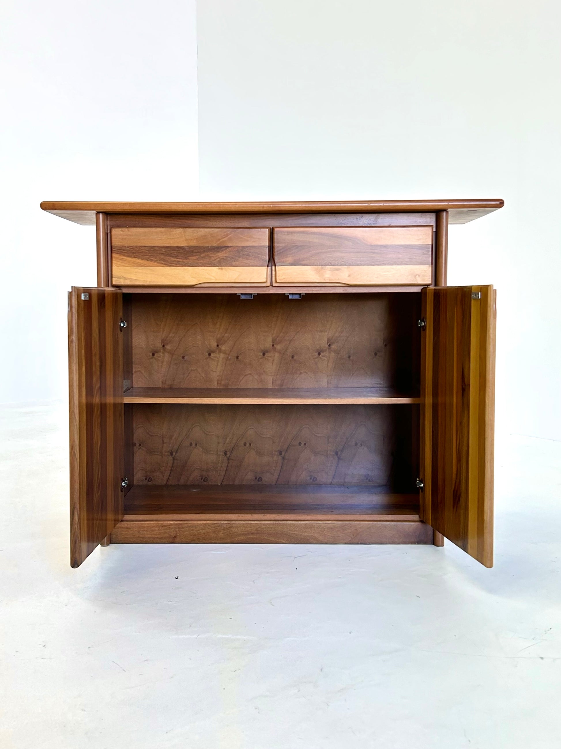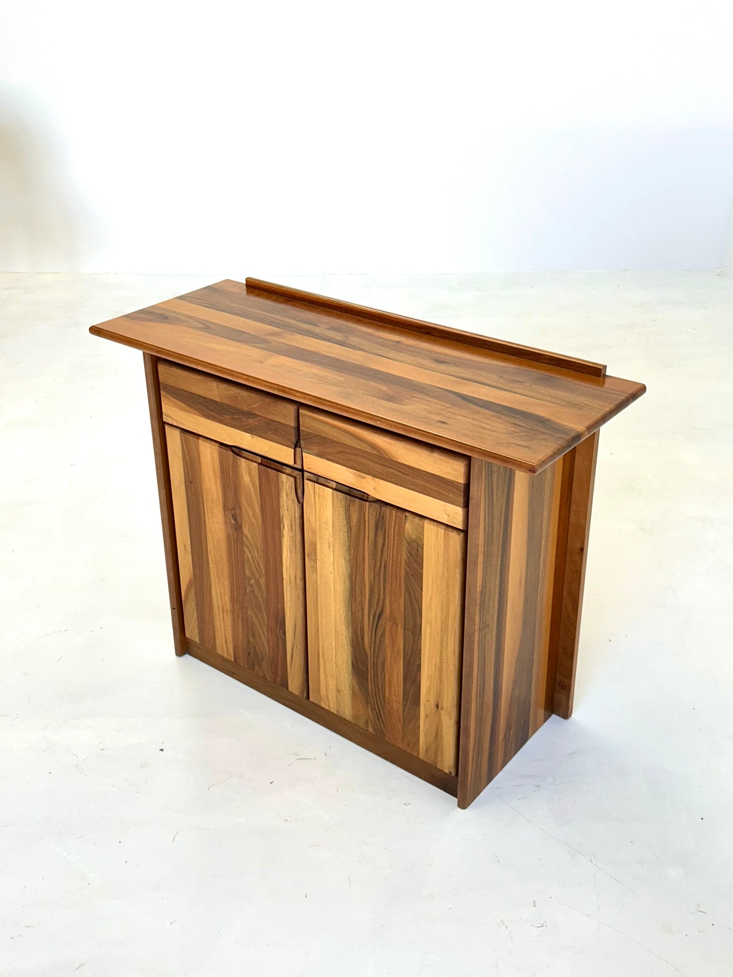 Deze Sapporo kast, ontworpen door Mario Marenco voor Mobilgirgi in de jaren '70, is een prachtig voorbeeld van Italiaans design uit die periode. De kast is uitgevoerd in walnoot fineer, wat zorgt voor een warme uitstraling.