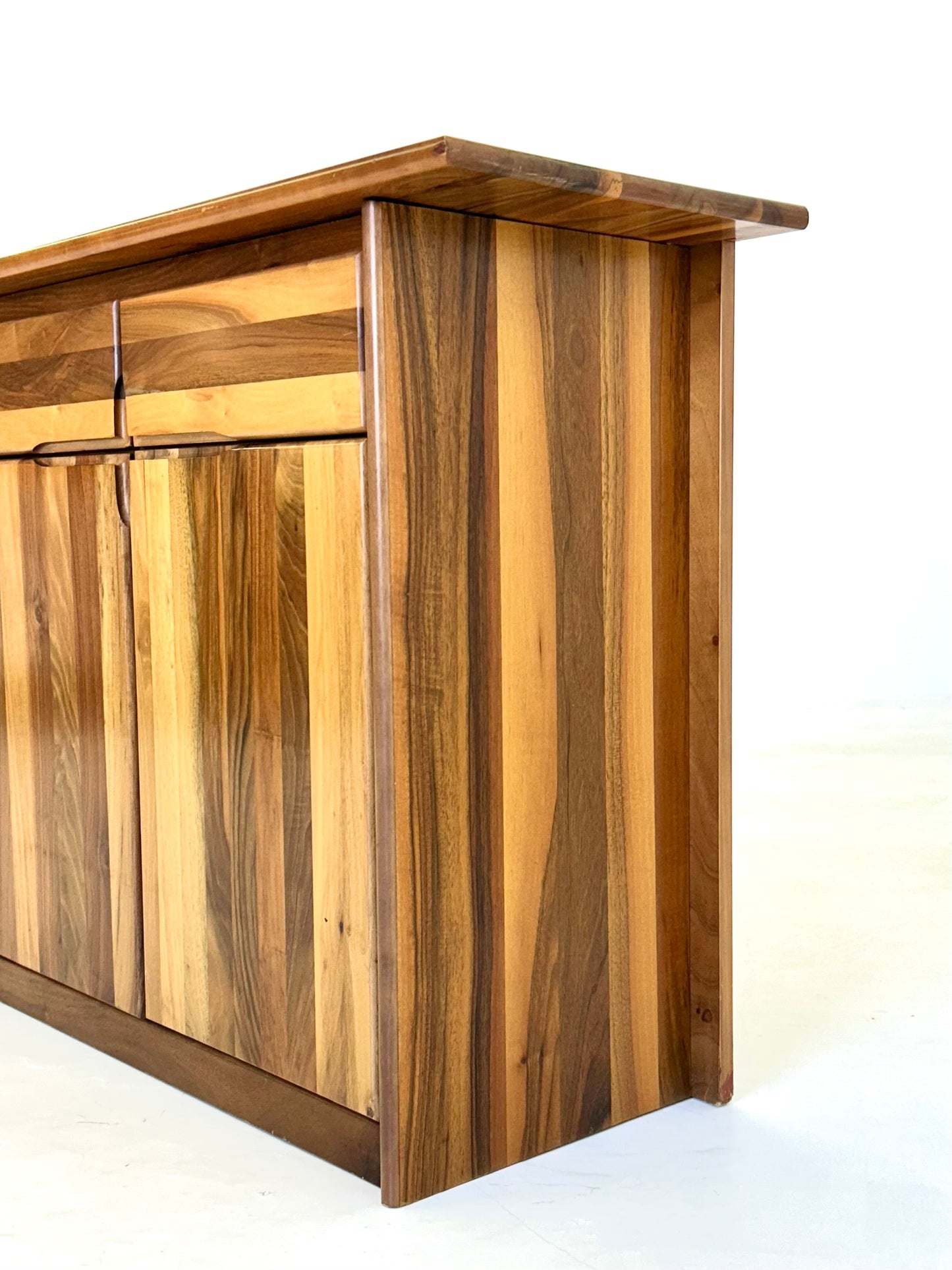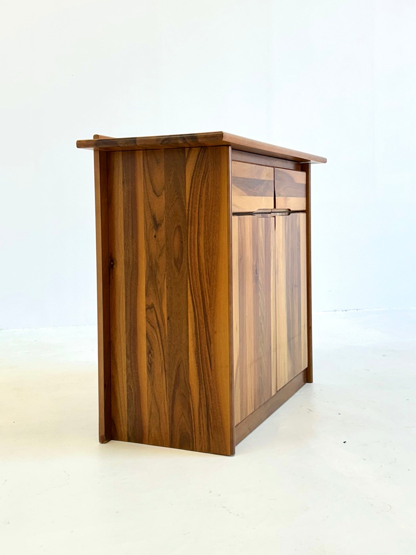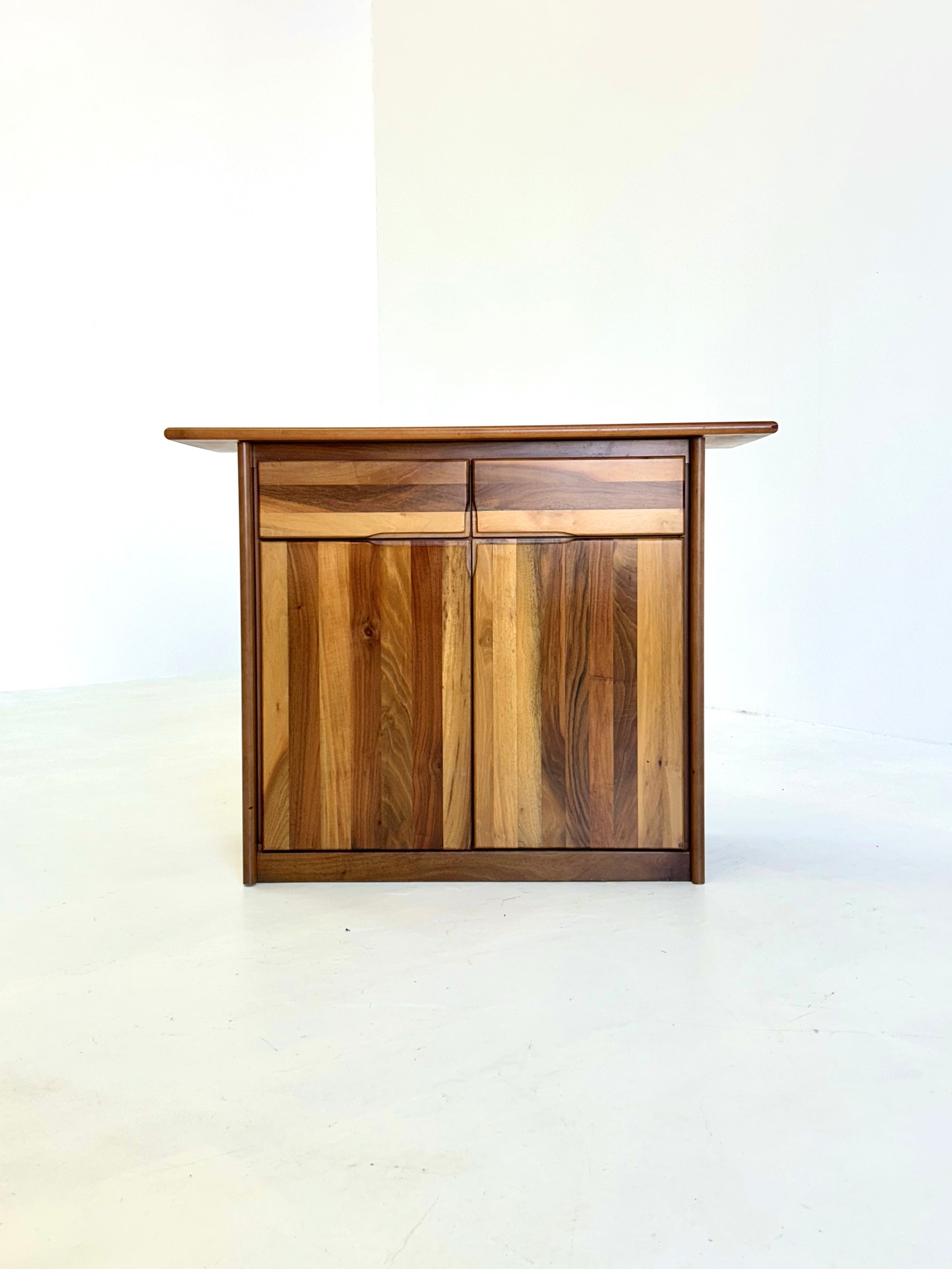 Deze Sapporo kast, ontworpen door Mario Marenco voor Mobilgirgi in de jaren '70, is een prachtig voorbeeld van Italiaans design uit die periode. De kast is uitgevoerd in walnoot fineer, wat zorgt voor een warme uitstraling.