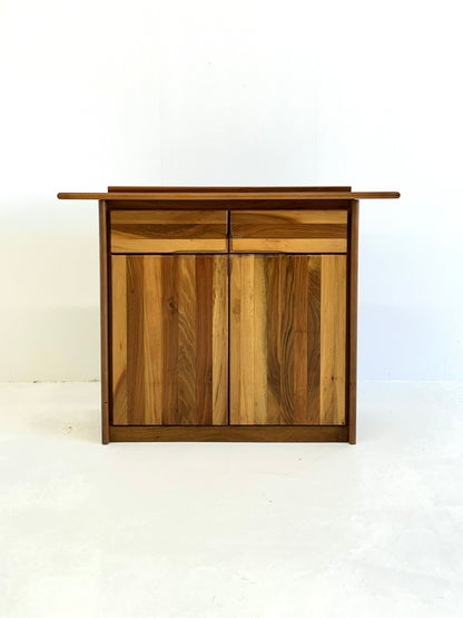 De kast heeft een minimalistische, strakke afwerking die typerend is voor het Italiaanse design uit de jaren '70.