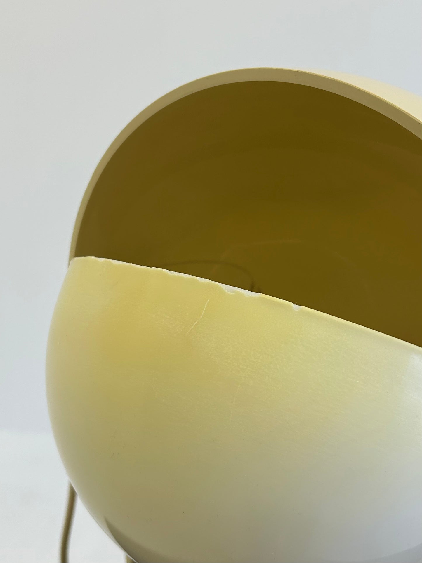 De lamp verkeert in goede originele en werkende staat, met weinig gebruikssporen. Er is lichte verkleuring aan de binnenkant van de diffuser. Geen deuken aanwezig.