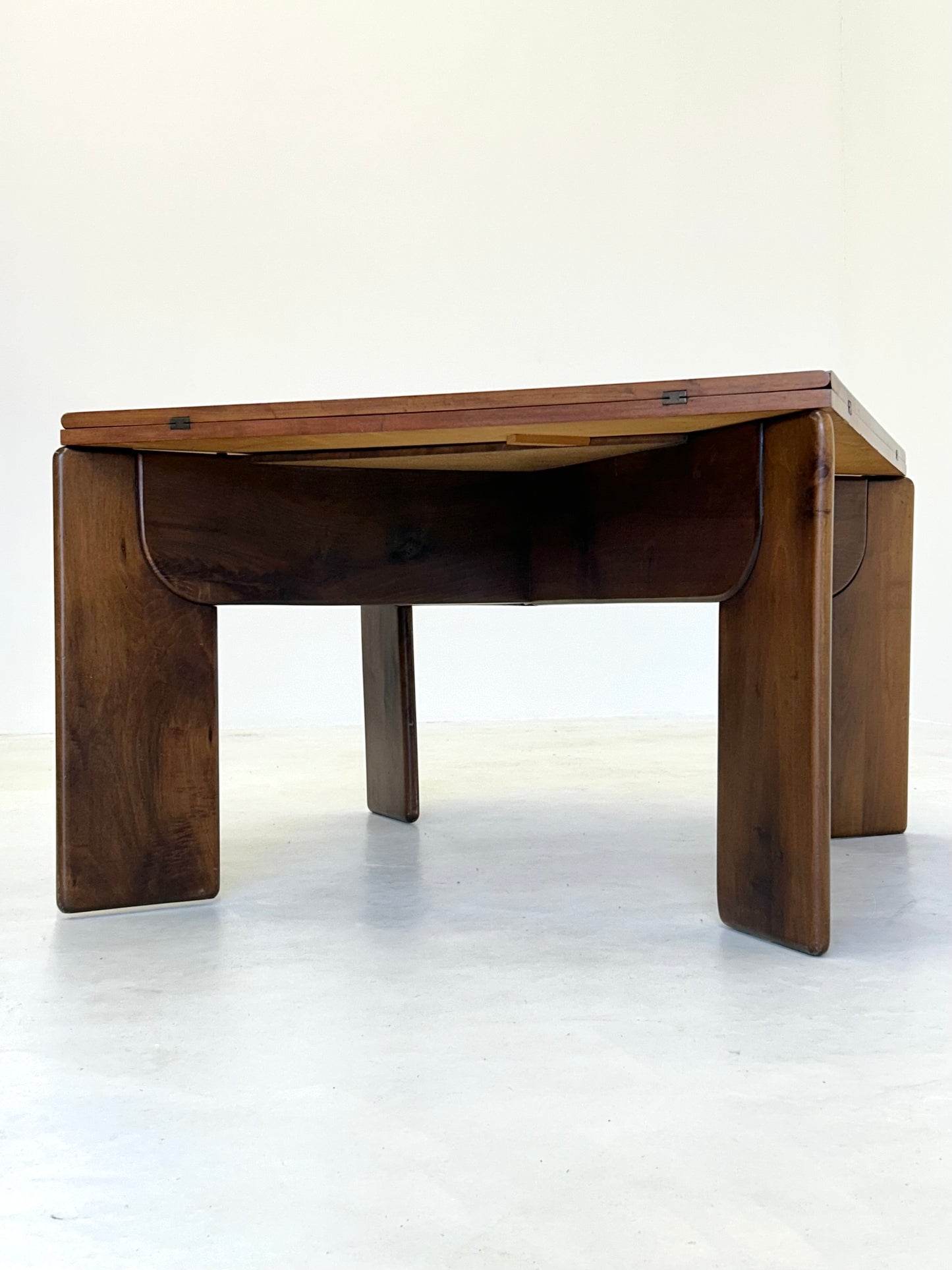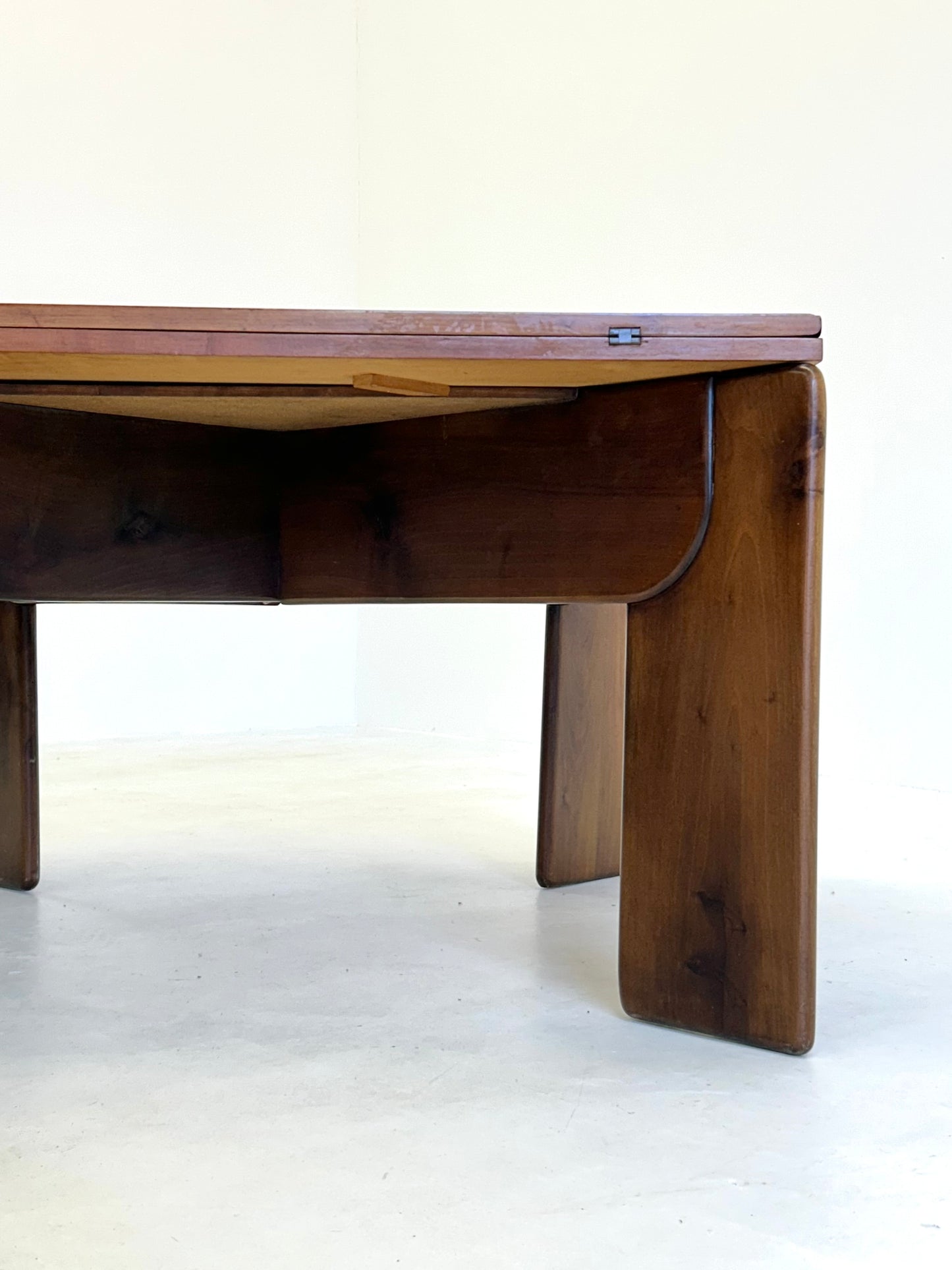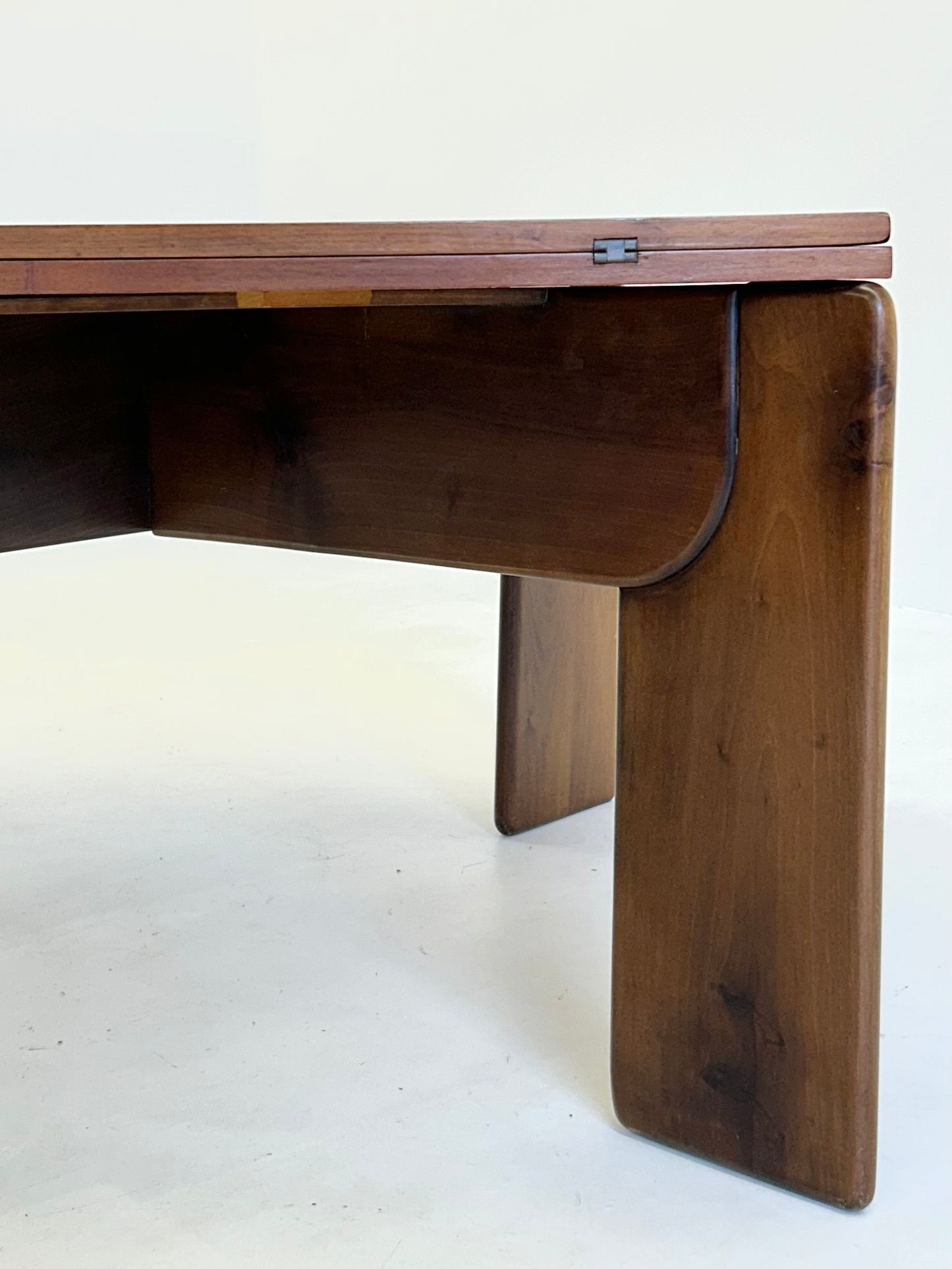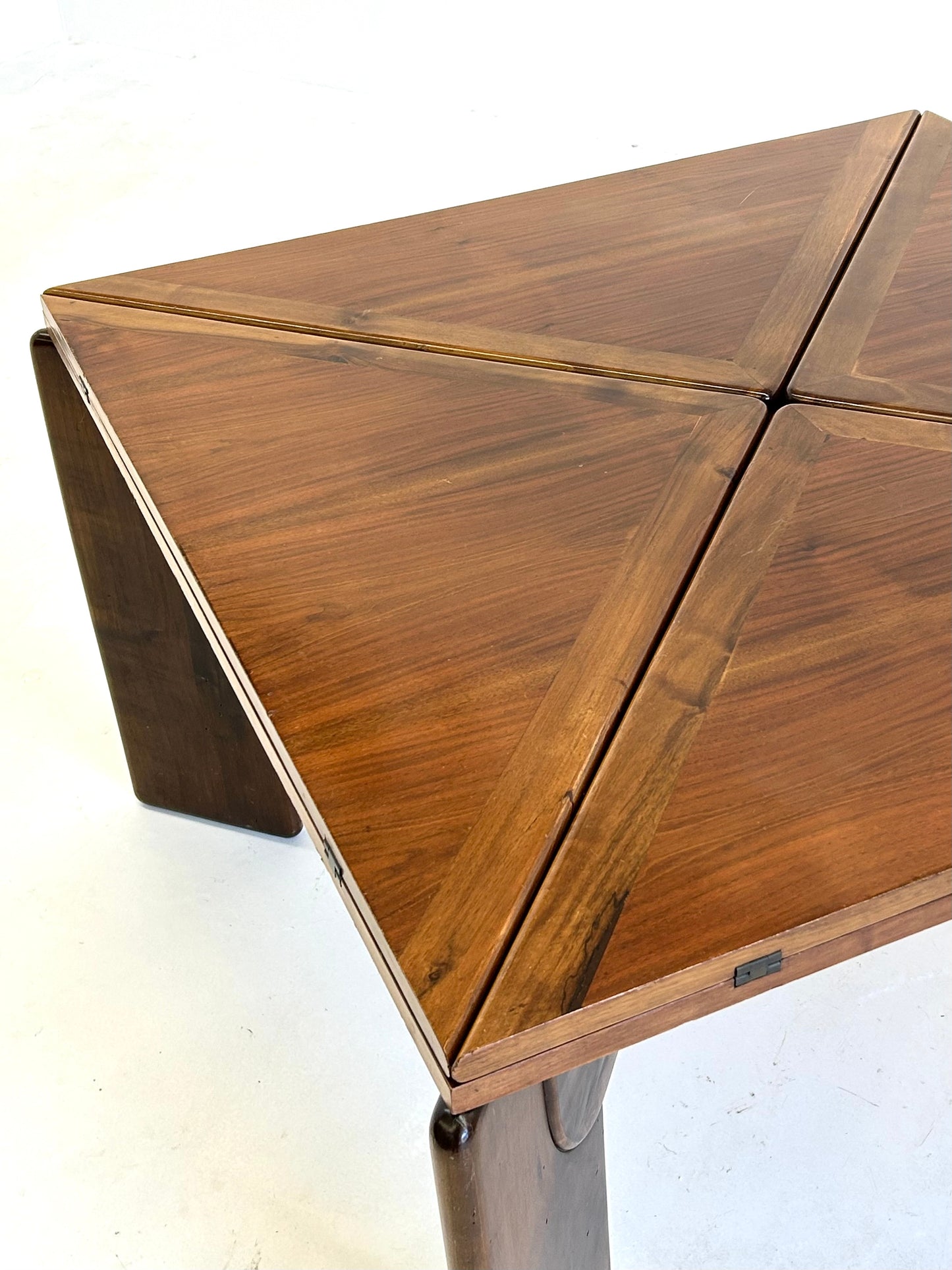 Deze prachtige uitschuifbare eettafel uit de jaren 60, ontworpen door Silvio Coppola voor Bernini, is een iconisch voorbeeld van Italiaans design uit de Mid-Century Modern periode. Gemaakt van fijn notenhout, met levendige nerven.