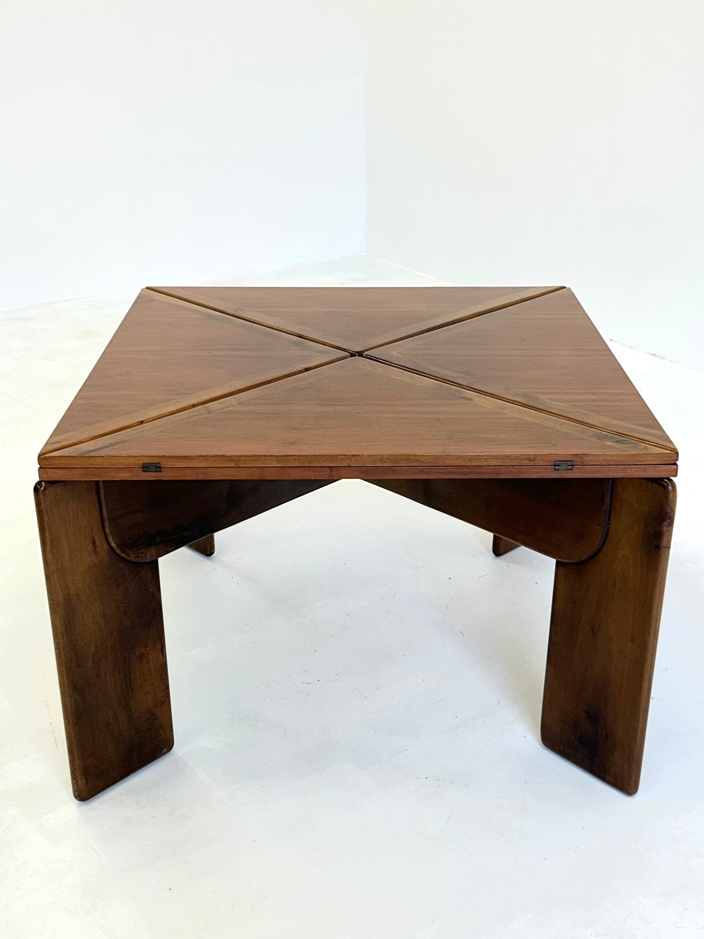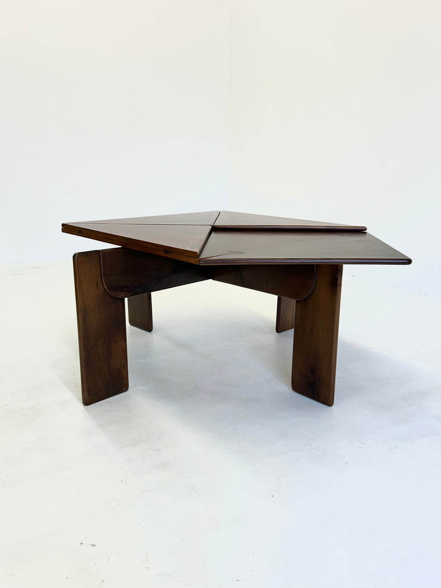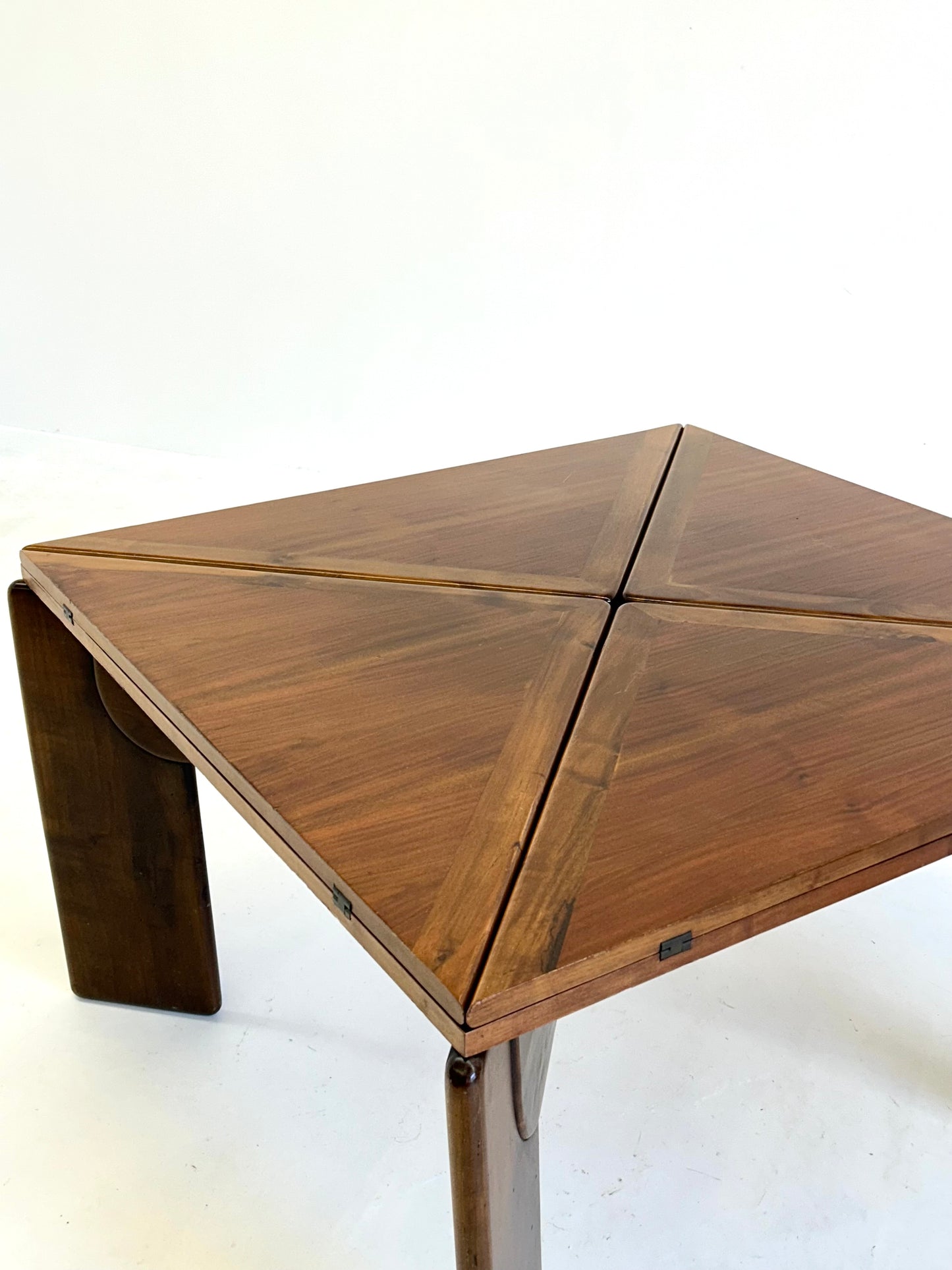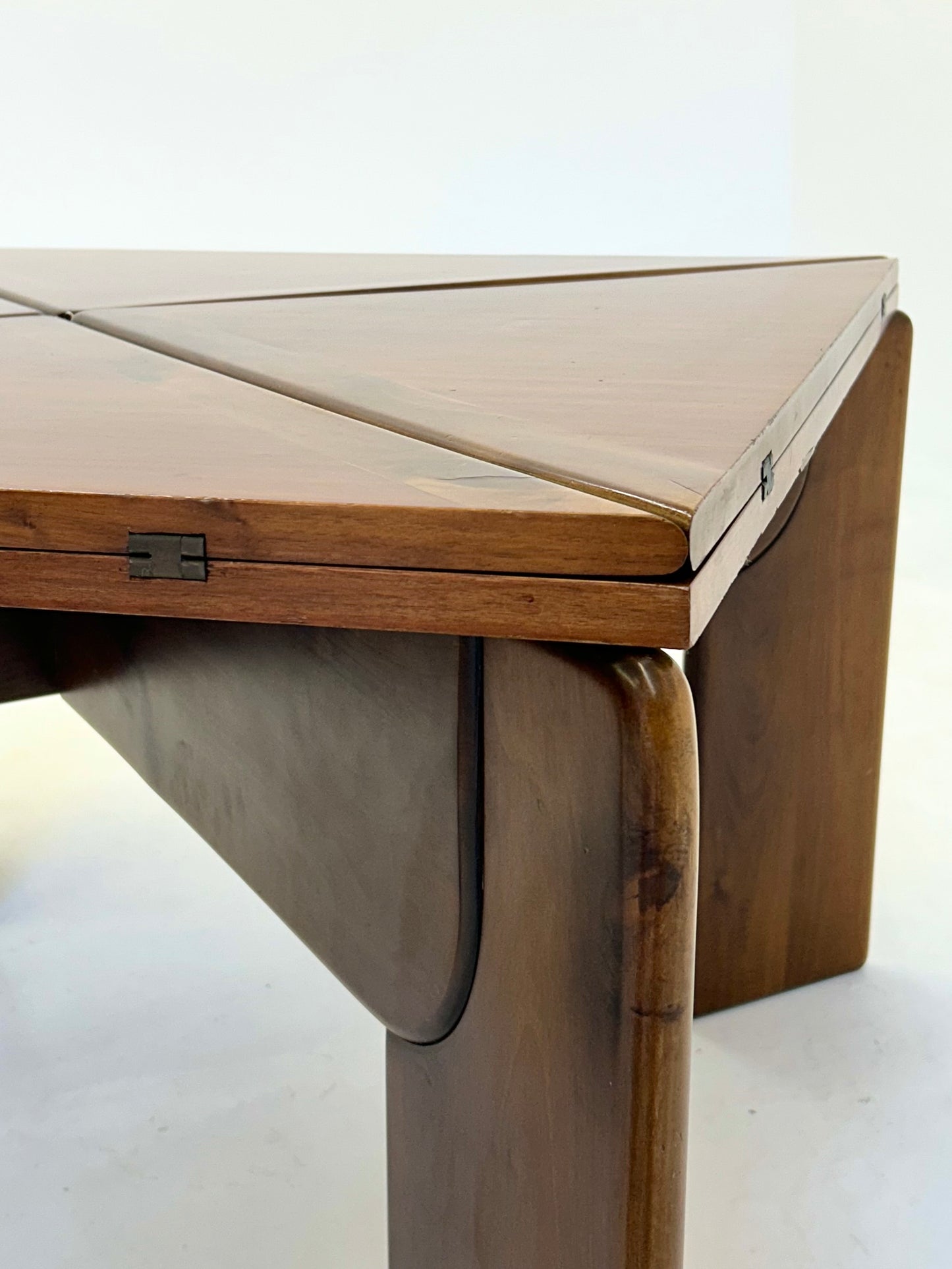 Deze prachtige uitschuifbare eettafel uit de jaren 60, ontworpen door Silvio Coppola voor Bernini, is een iconisch voorbeeld van Italiaans design uit de Mid-Century Modern periode. Gemaakt van fijn notenhout, met levendige nerven.