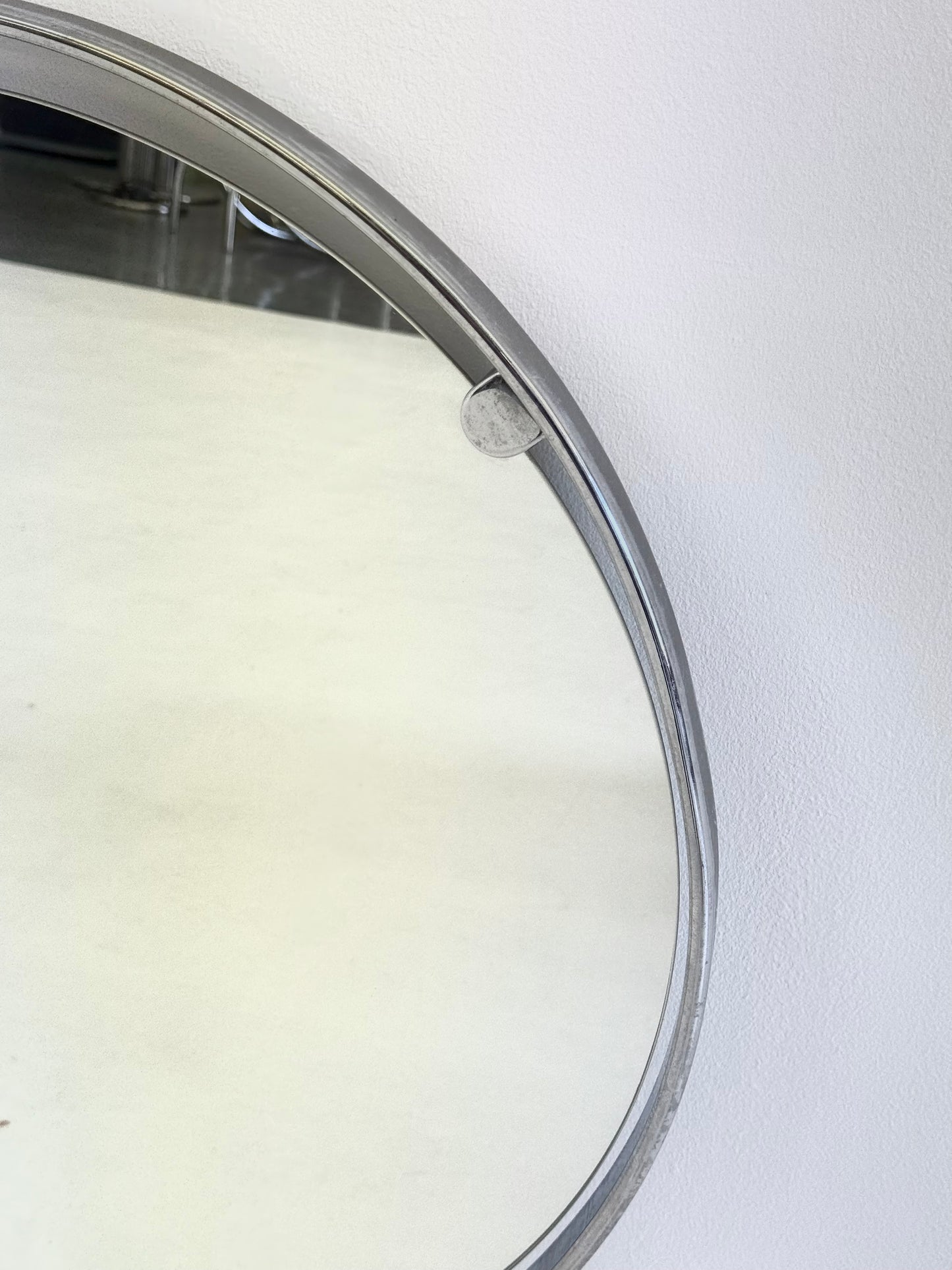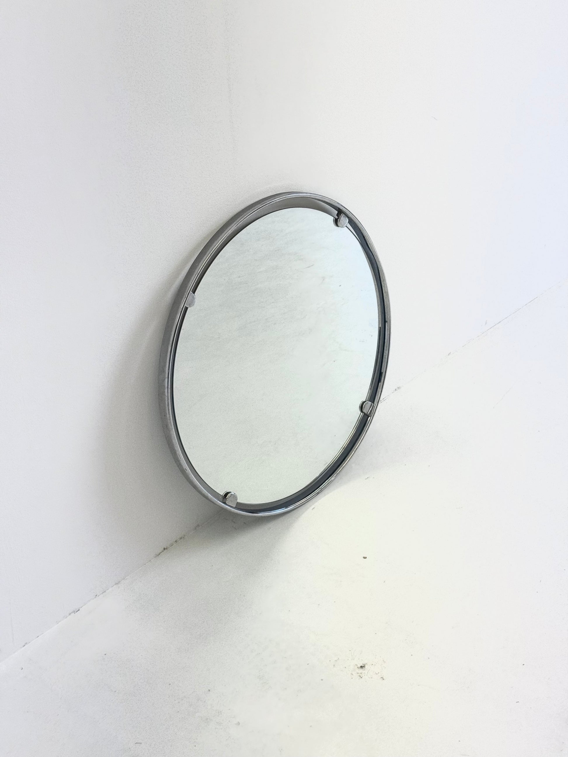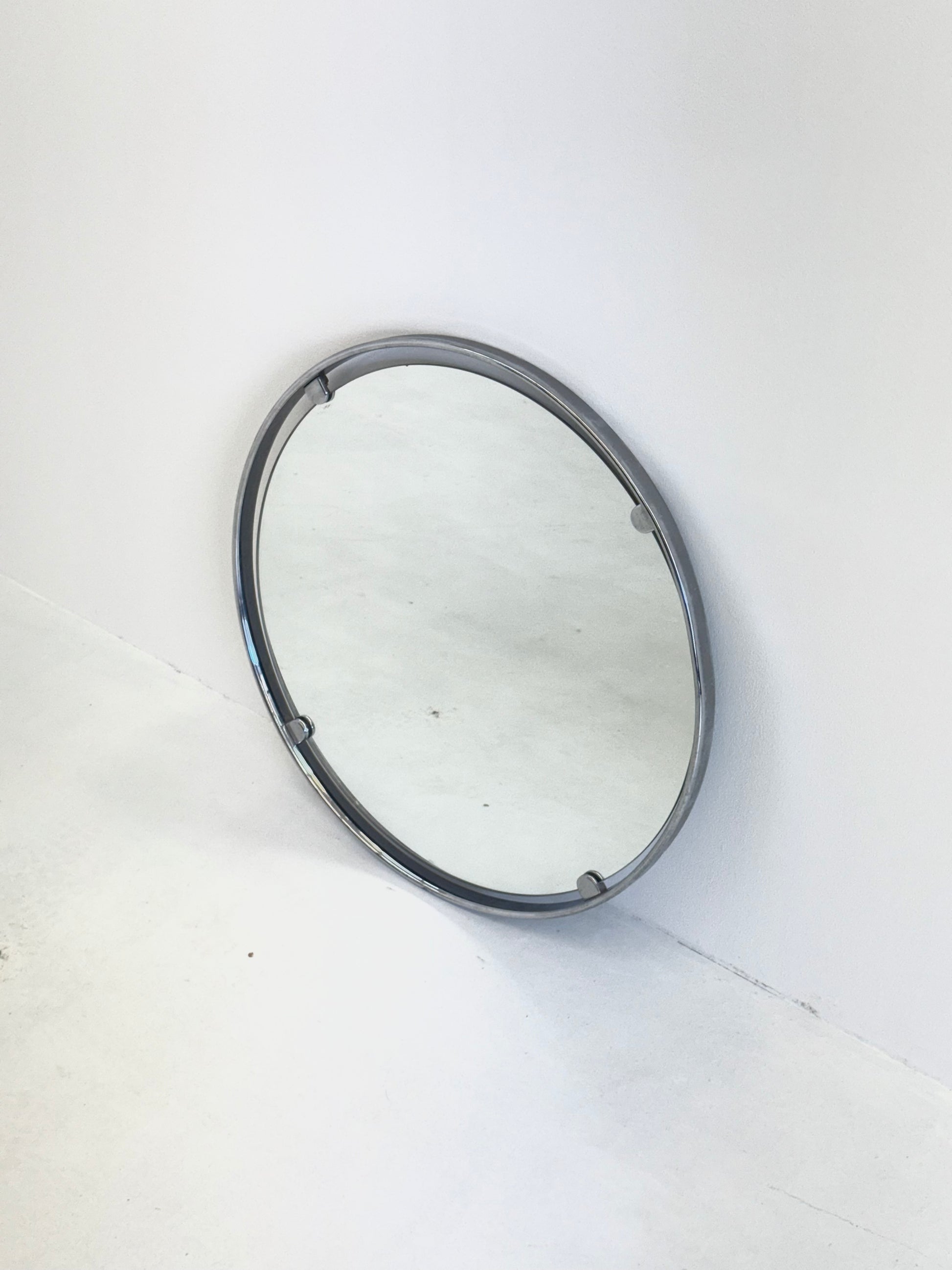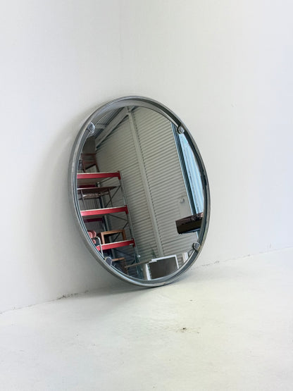 Deze spiegel heeft een strak buisframe met een speels accent, waarbij vier stevige verbinders de spiegel in de cirkel houden. Het design biedt een leuke, dynamische twist, waardoor de spiegel een unieke uitstraling krijgt die de aandacht trekt in elke ruimte.