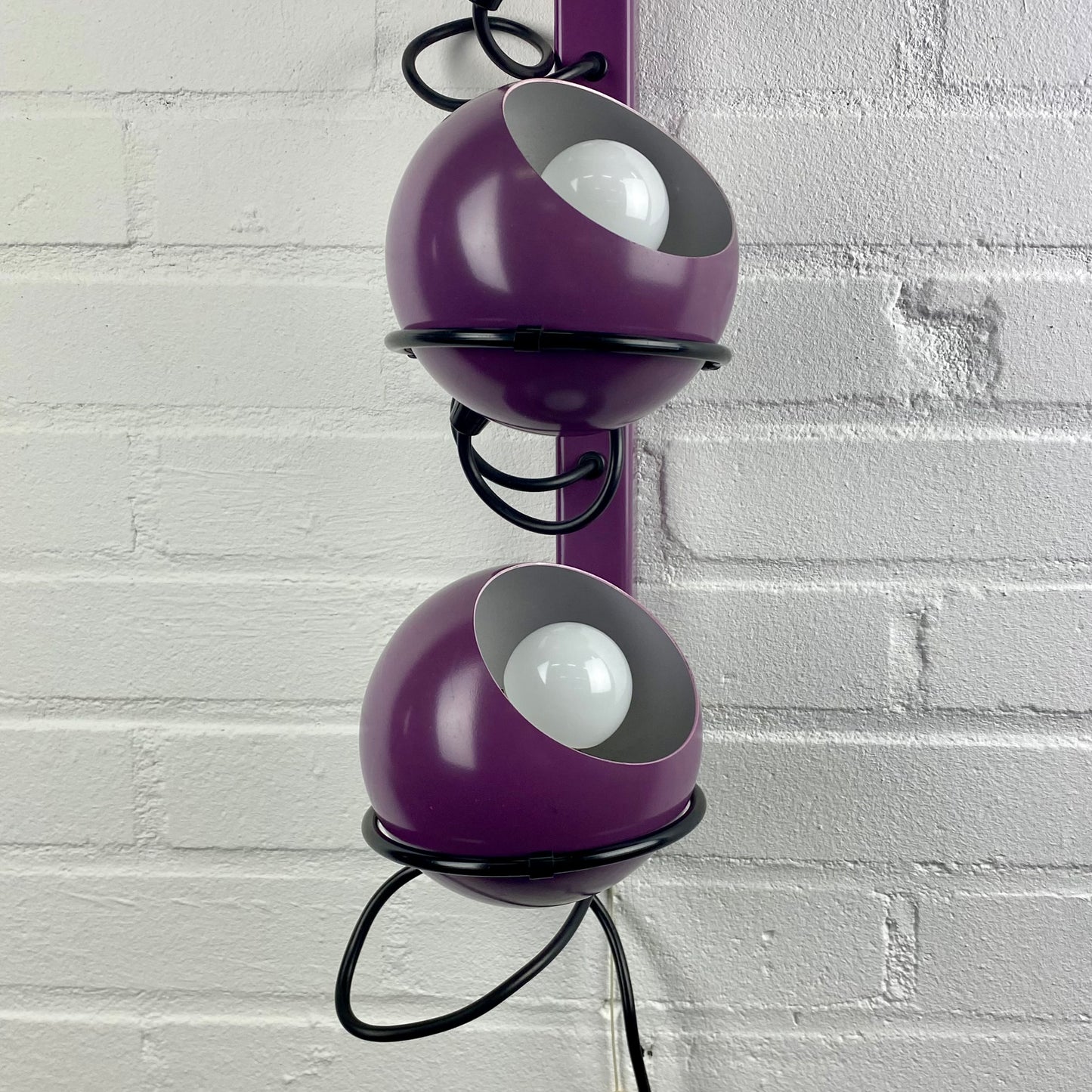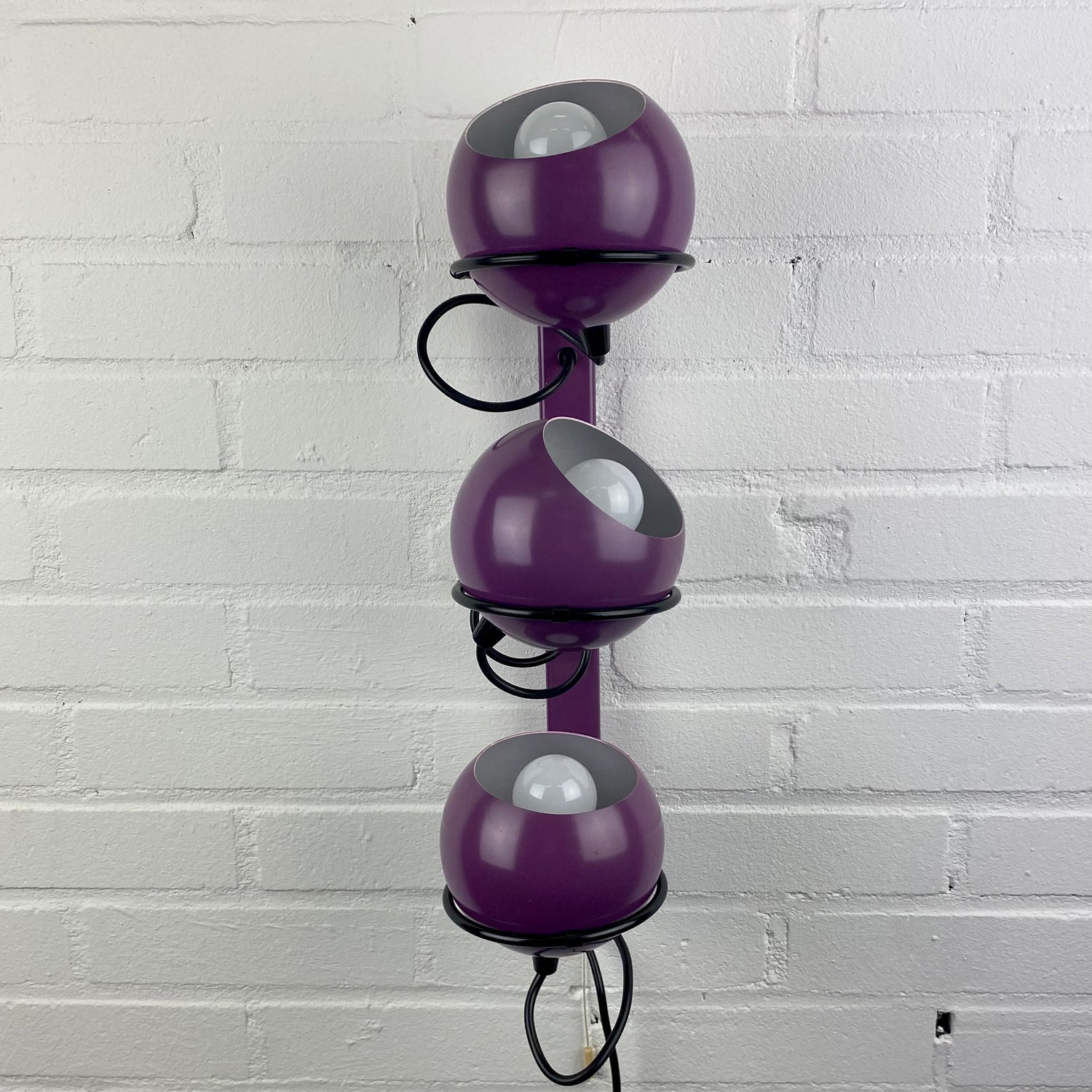 Omschrijving: Paarse vintage Gepo Wandlamp met drie bollen.