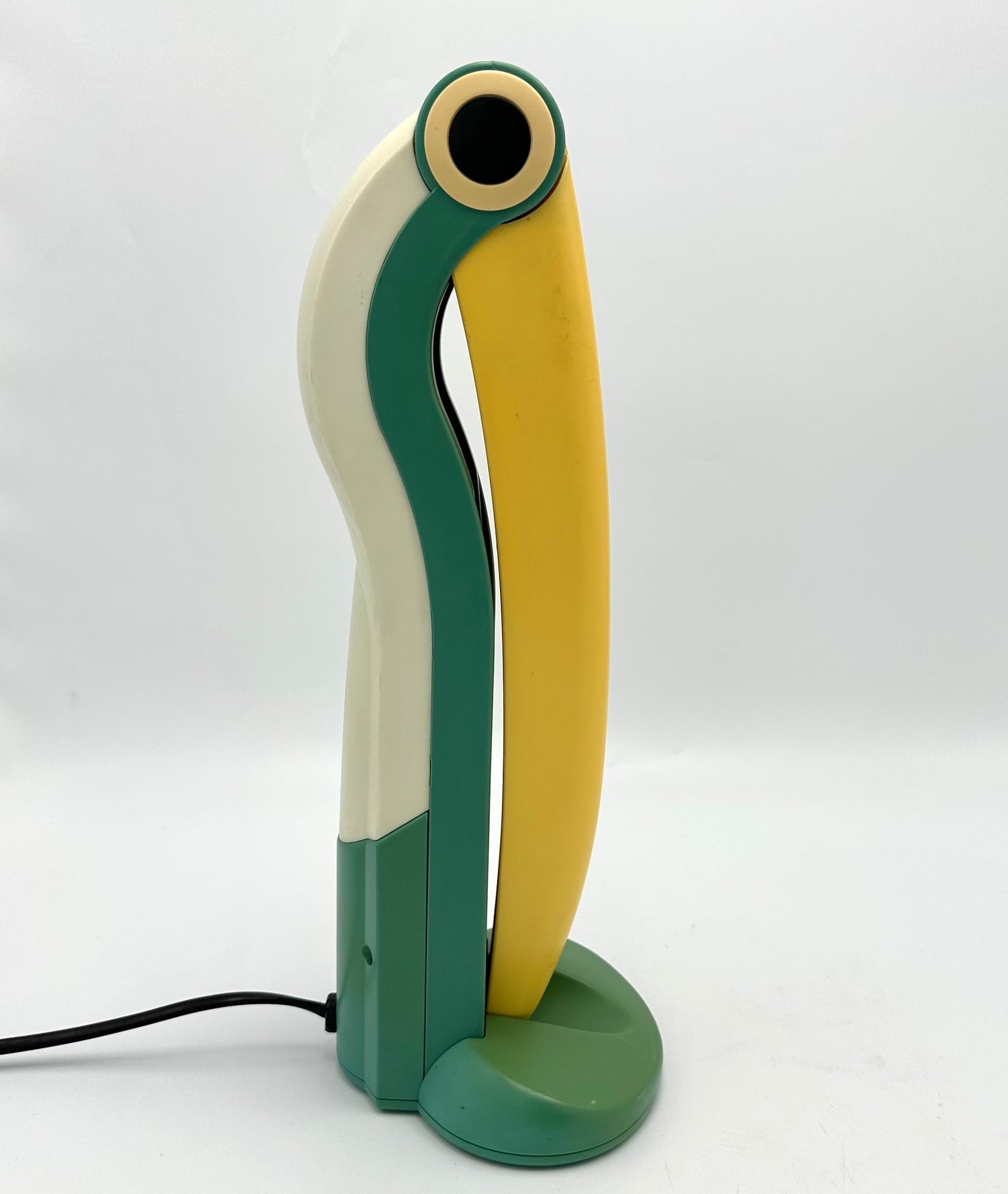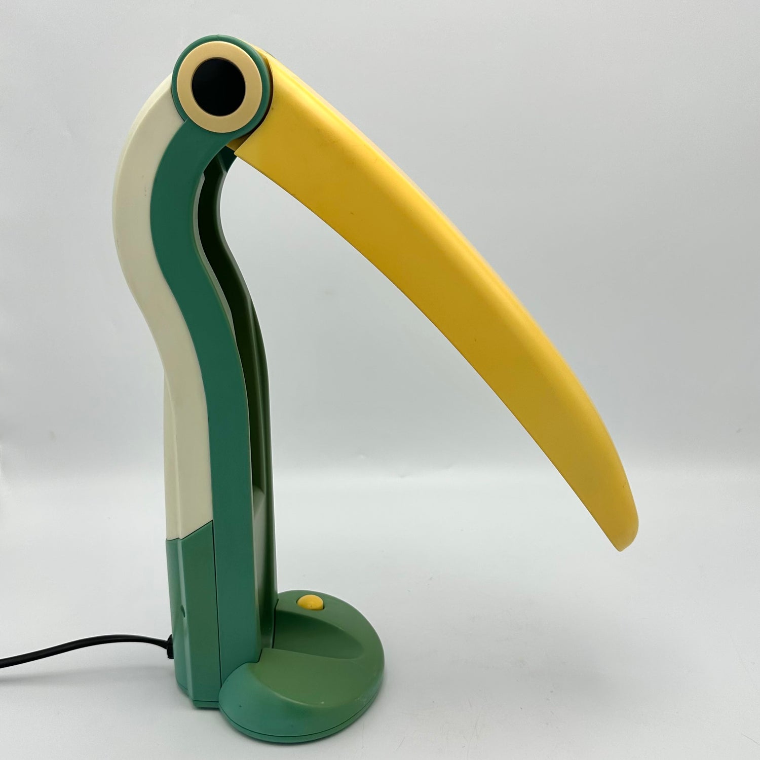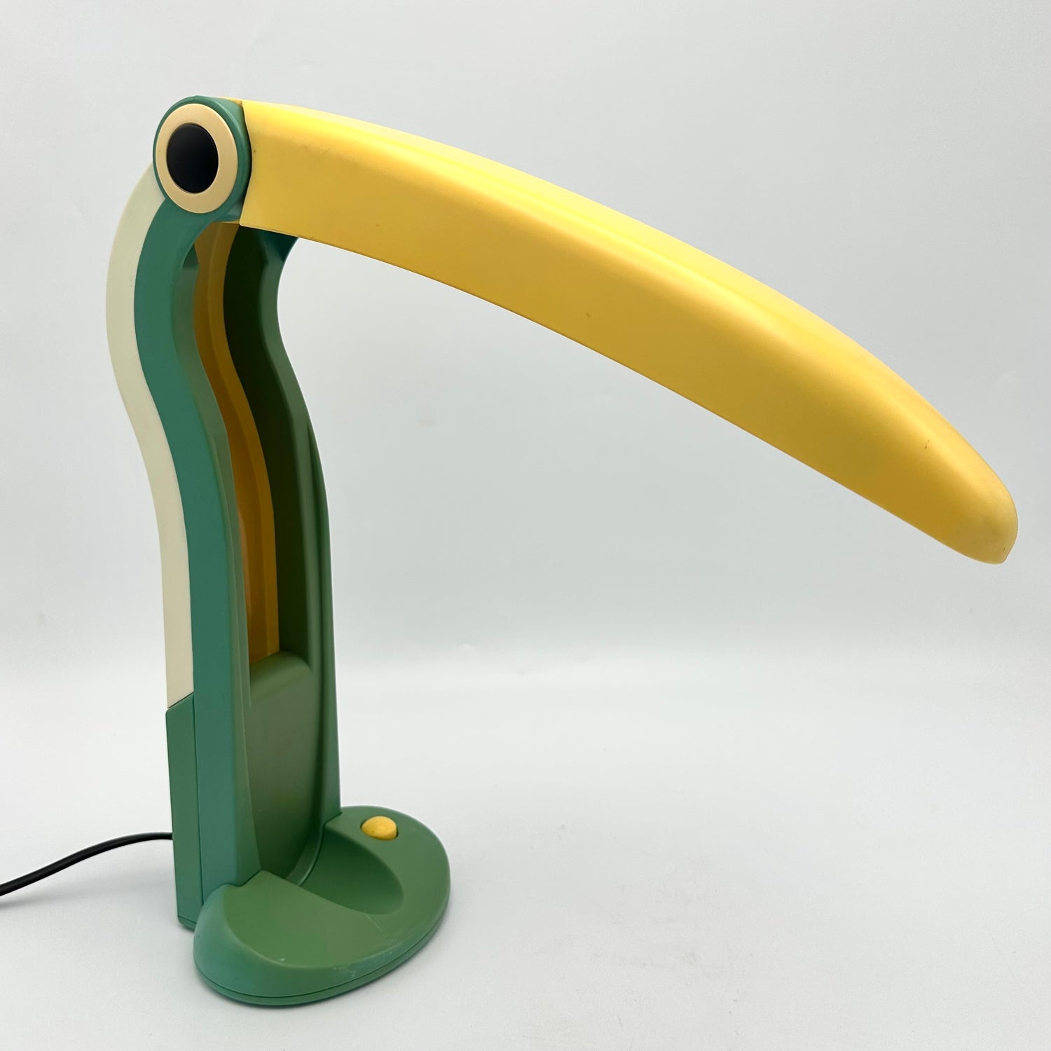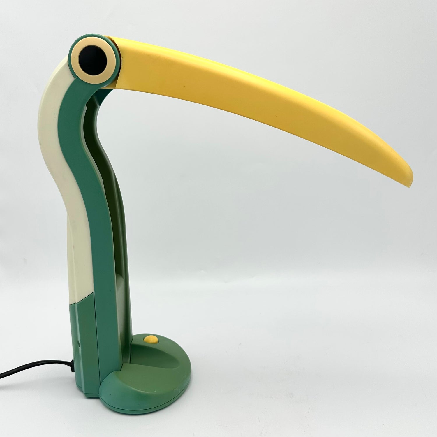 Omschrijving: Vintage Toucan lamp door H. T. Huang voor Lenoir in de kleur groen, geel en wit.