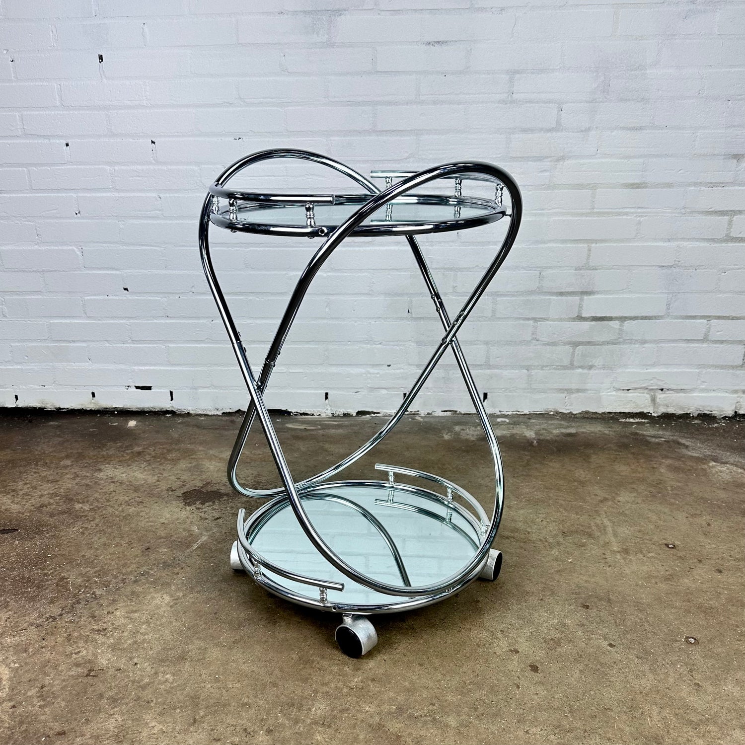 Omschrijving: Vintage buisframe trolley rond met spiegelplaten