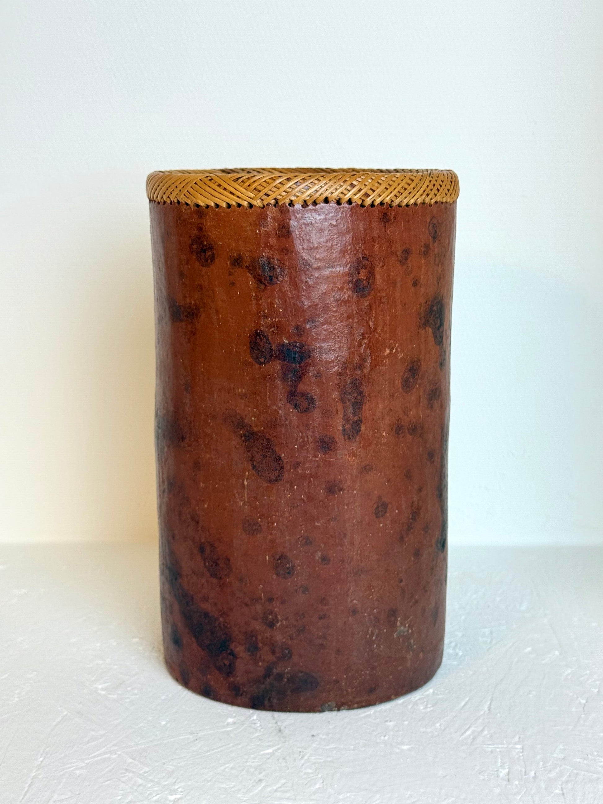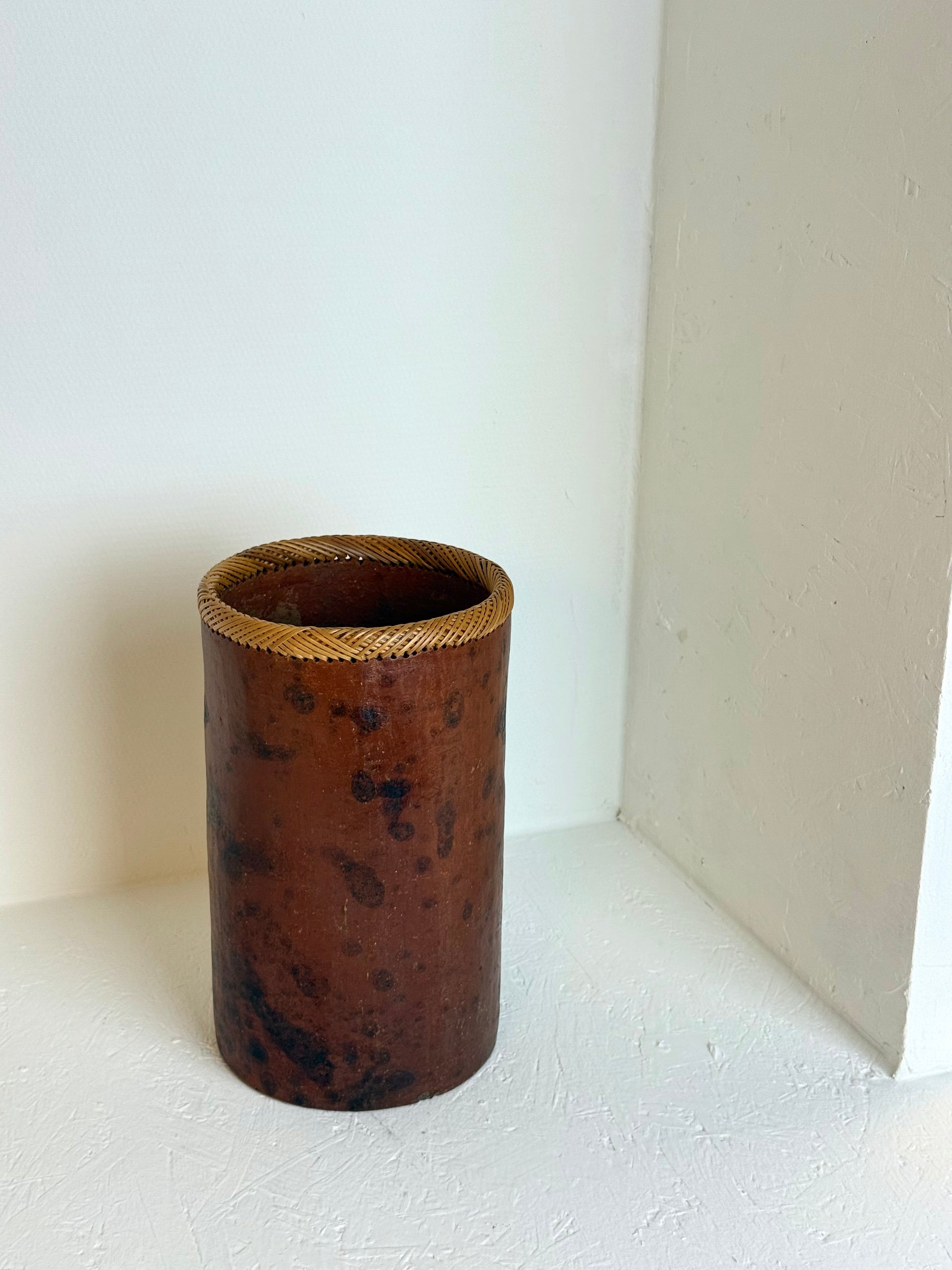 Vintage Wabi-Sabi Ronde langwerpige vaas met rotan