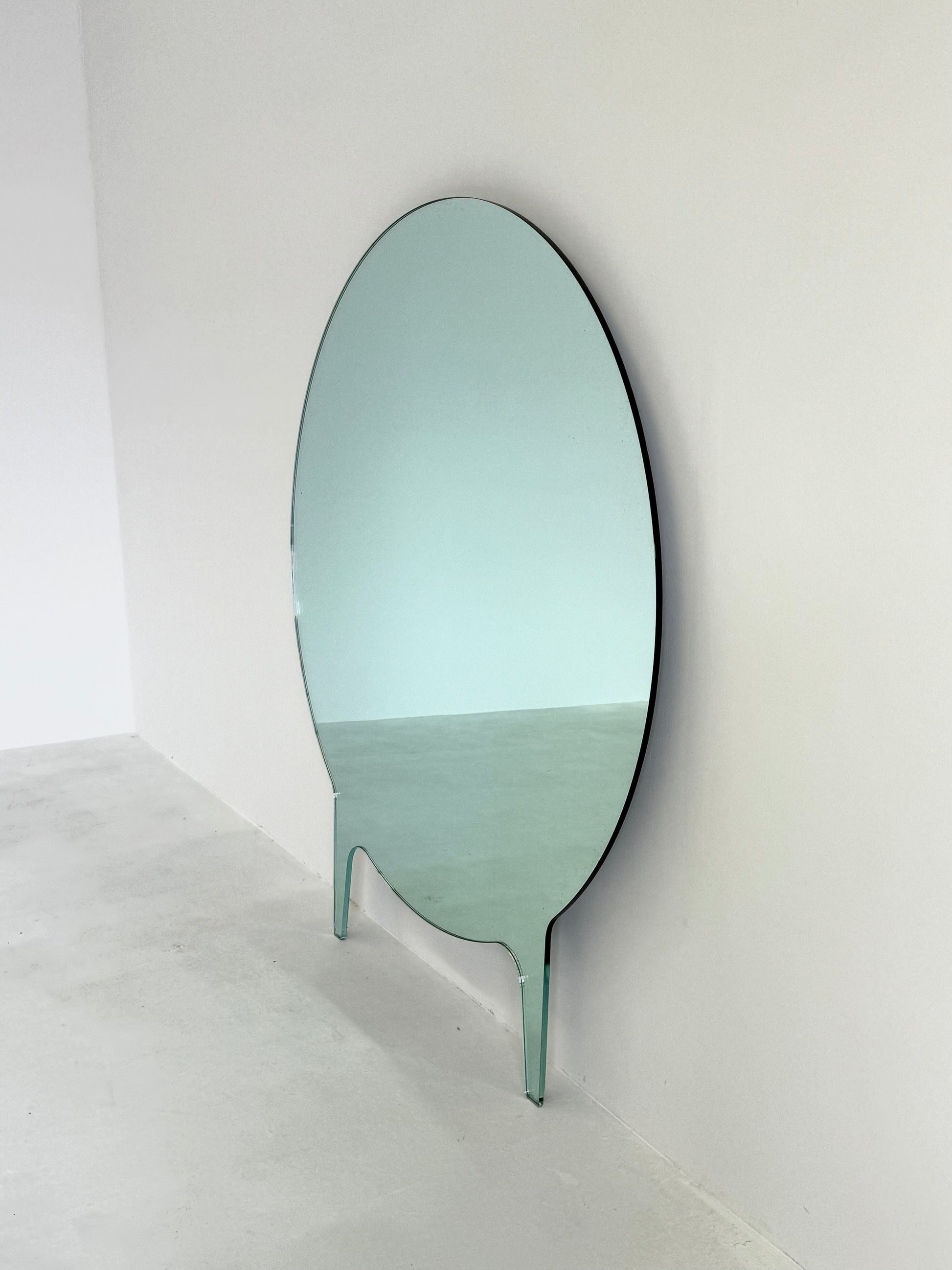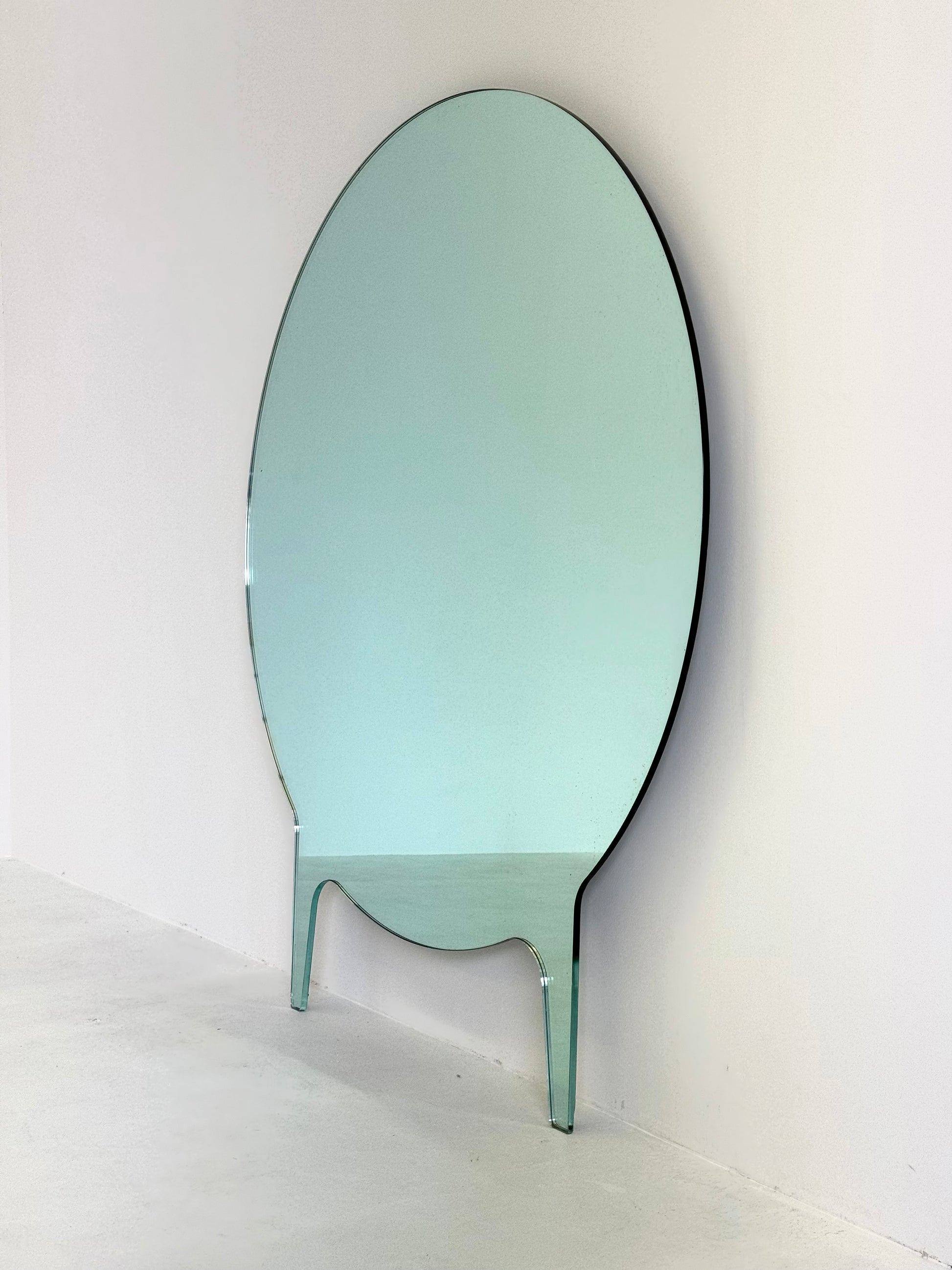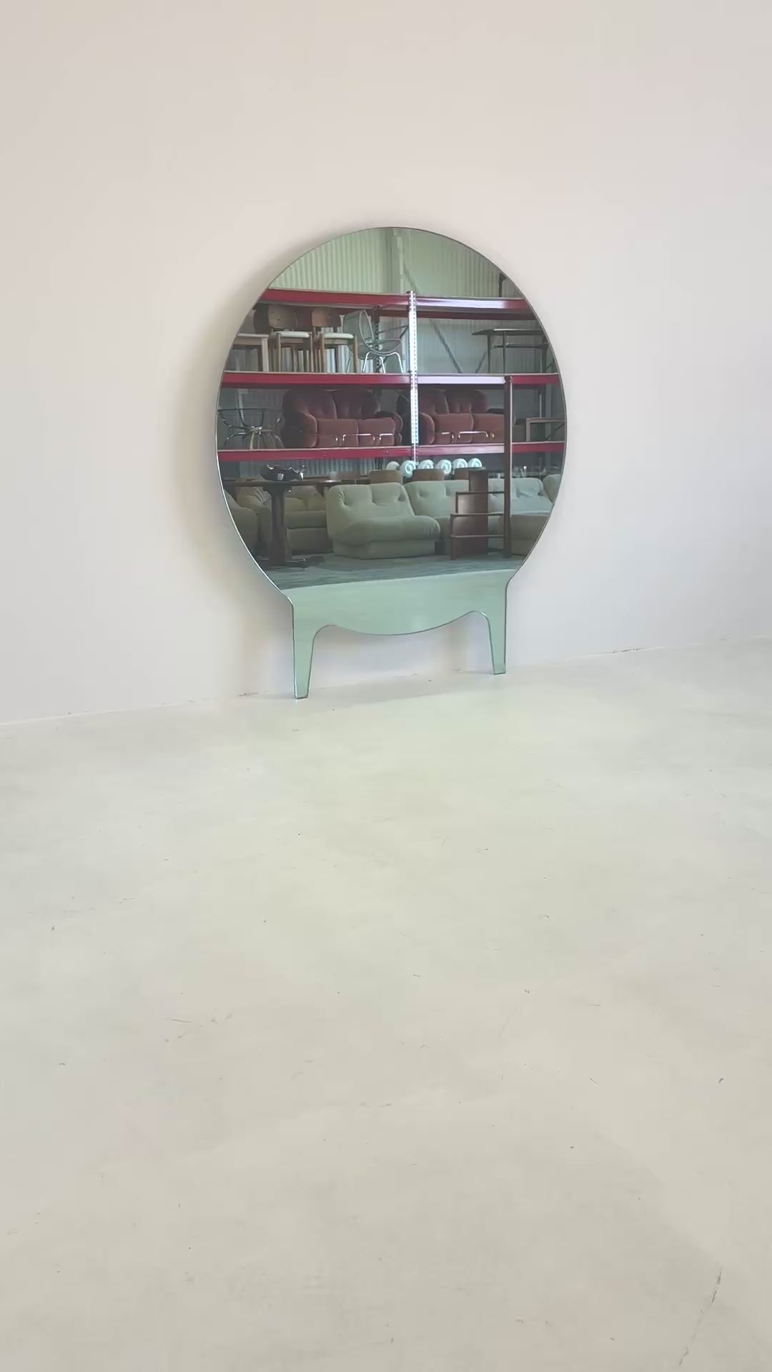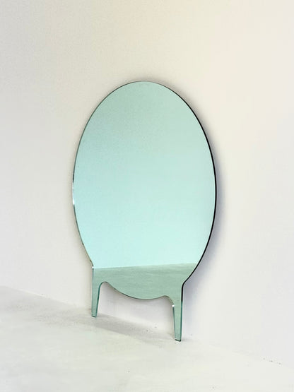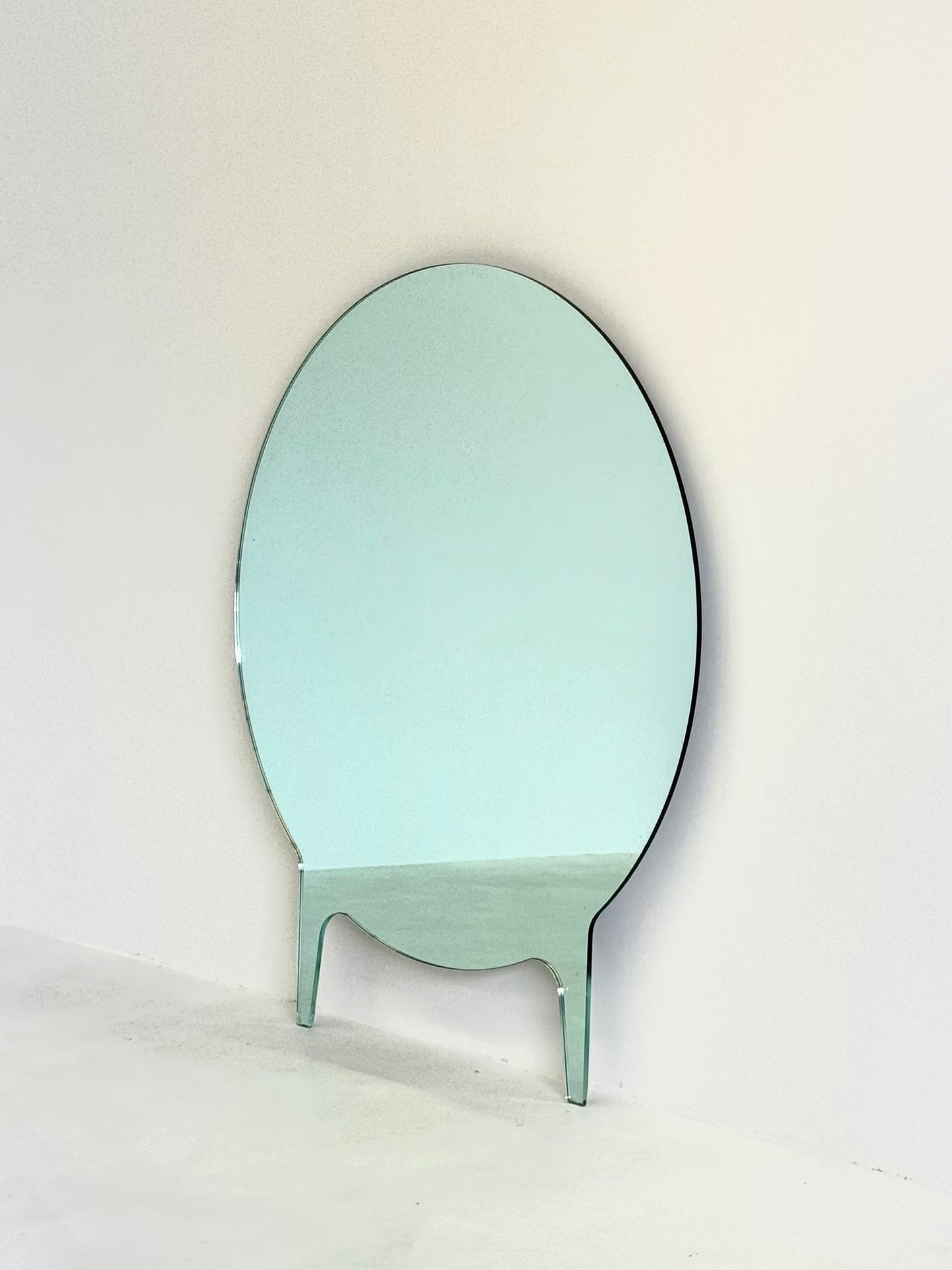 Ontworpen door Roderick Vos en bekend onder de naam MIR, is dit stuk niet alleen functioneel maar ook een sculpturaal object op zich. De spiegel is volledig zelfstaand en heeft geen verdere ondersteuning nodig.
