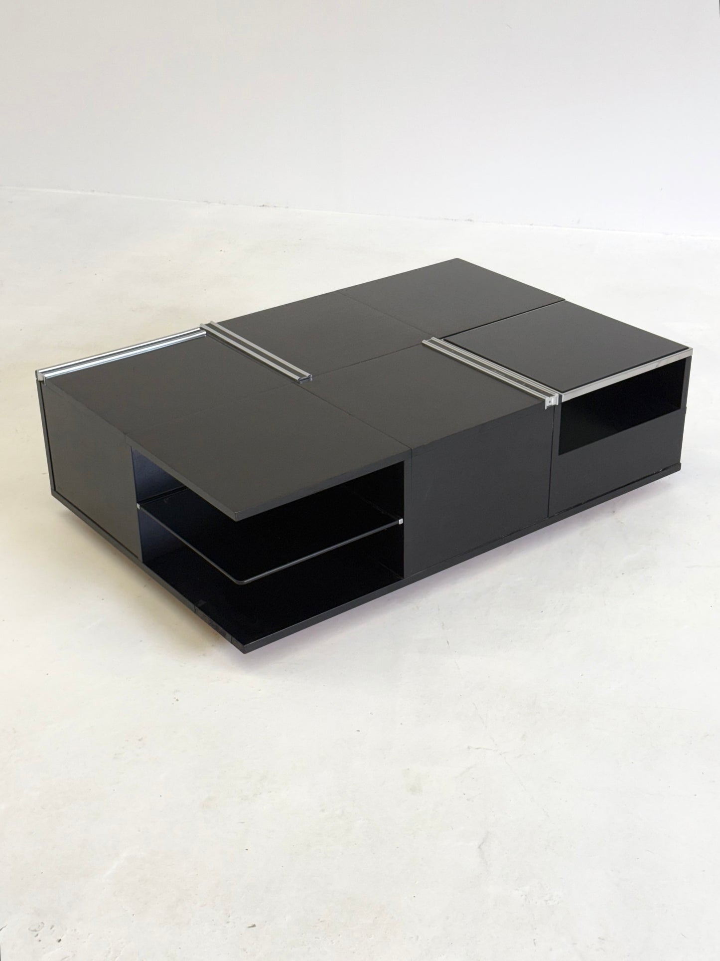 Zwart houten vintage salontafel van Fiarm met chromen details